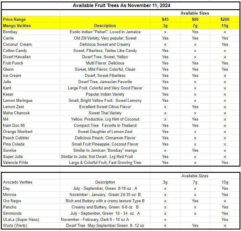 Tropical fruit trees offer a unique and rewarding addition to any landscape. They not only enhance the aesthetic appeal of a property but can also provide delicious, fresh fruits right from your backyard. Please browse our current selection of fruit trees.